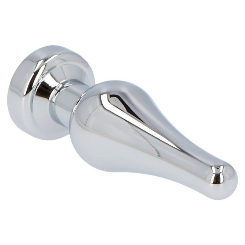 Aluminum anal plug with a jewel at the base. Tapered tip for gradual insertion, easy grip and handling. Totally smooth and with an original conical shape and increasing diameter.