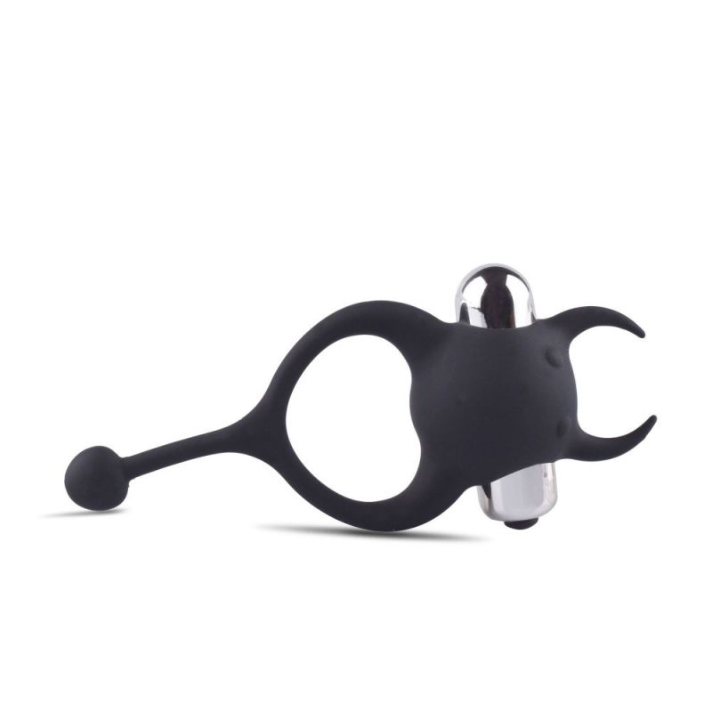 The Devil Cock Ring from Toyz4Lovers is a phallic ring with a mini vibrating bullet in the shape of a little devil to spice up your intimate moments. Worn on the base of the penis, it will also stimulate the clitoris during penetration with its lively vibrations for intense orgasms. The phallic ring is easy to use and is ready to deliver erotic moments of satisfying intensity, prolonging your erection for unprecedented enjoyment. It's made of hypoallergenic, phthalate-free silicone, is soft touch and has a waterproof coating for fun in the water.