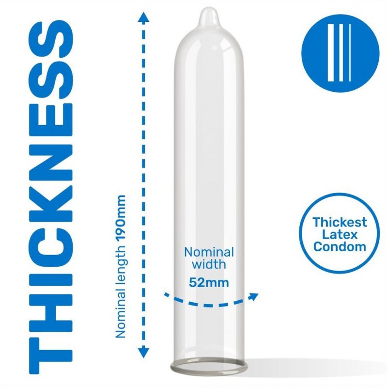Pasante Extra Resistant condoms are natural rubber latex condoms, extra lubricated and have an increased thickness to ensure maximum safety during sexual intercourse, especially anal intercourse. These condoms have a classic reservoir shape, are extremely durable and comfortable and have a nominal width of 52 mm. Pack of 3 condoms.If used correctly, they protect the woman from unwanted pregnancies and protect both partners from sexually transmitted diseases.